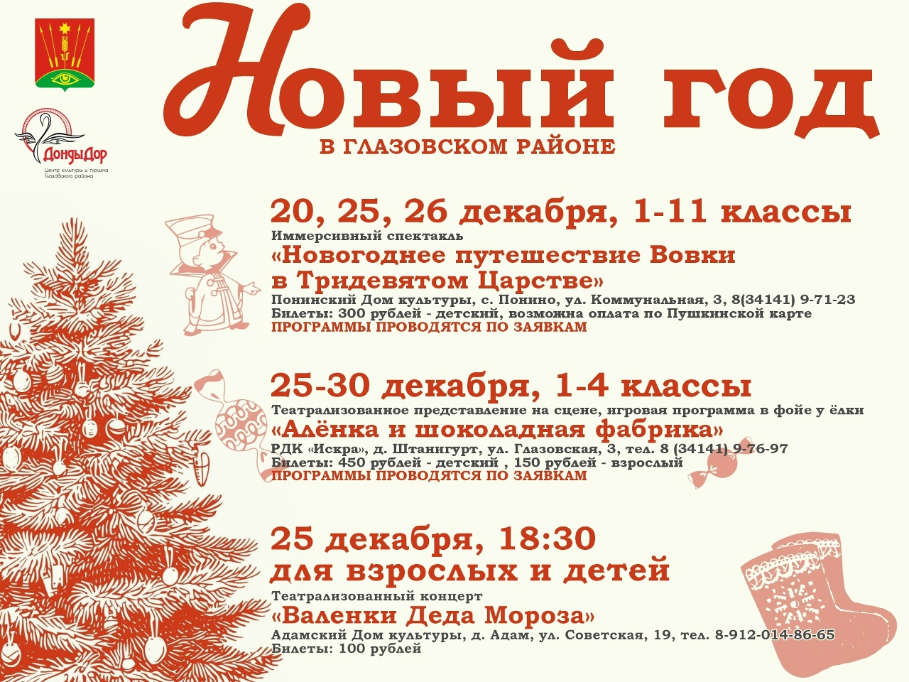УРА! СПЕШИТЕ ОТМЕТИТЬ НОВЫЙ ГОД в ГЛАЗОВСКОМ РАЙОНЕ